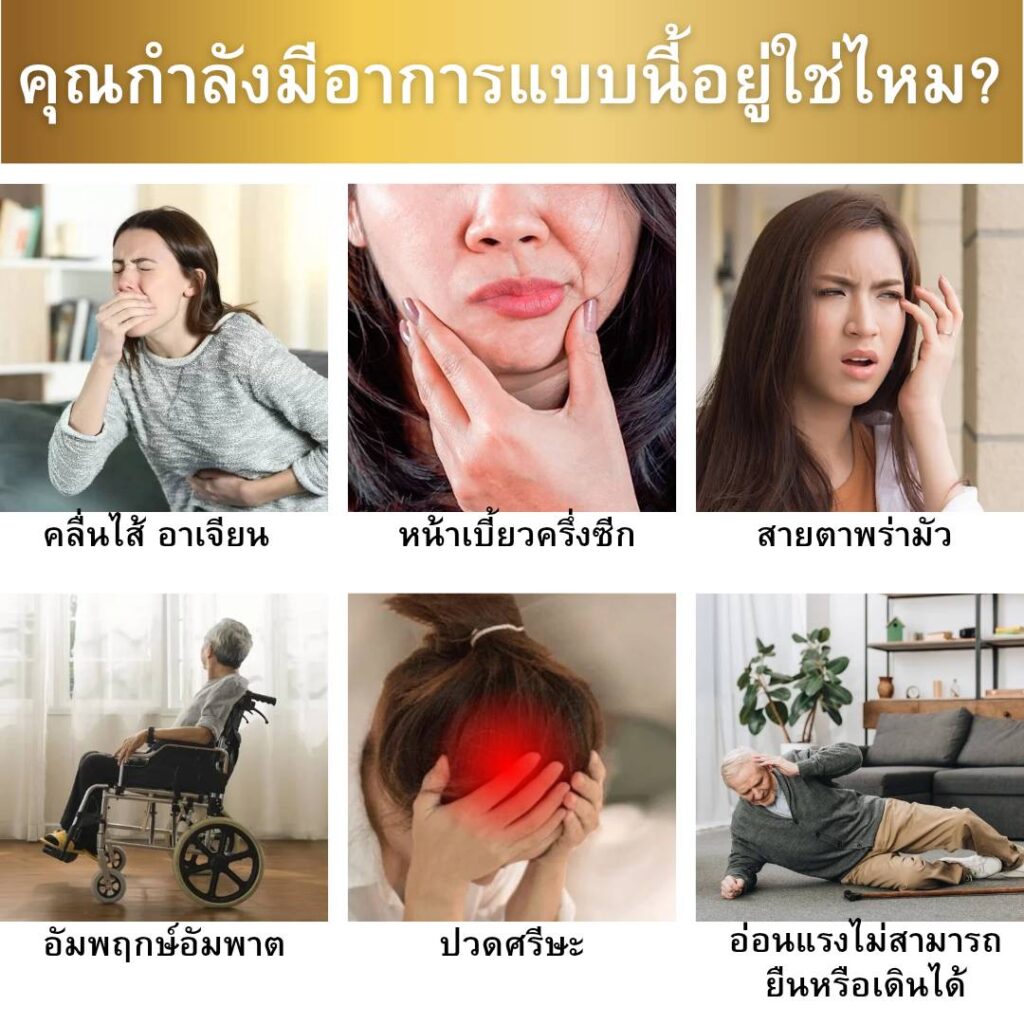 เริ่มจาก กำลังกินอาหารตักอาหารแล้วช้อนหล่นมือ ไม่มีแรง ลิ้นแข็งพูดไม่ชัด เดินโครงเครง มึนหัว ทรงตัวลำบาก ลูกพาไปหาหมอคลีนิค หมอบอกให้เข้ารักษาโรงพยาบาลด่วน!! หมอวิเคราะห์ว่าเส้นเลือดฝอยในสมองตีบ ตกใจมาก เพราะยาลดไขมันก็กิน ไม่คิดว่าตัวเองจะเป็นเส้นเลือดในสมองตีบ เริ่มมีอาการชาครึ่งซีกซ้ายขยับไม่ได้ ไม่มีแรง เข้ารักษากายภาพบำบัด ป่วยติดเตียง มันทรมานมาก มีความเครียดจนต้องพบหมอจิตเวช
