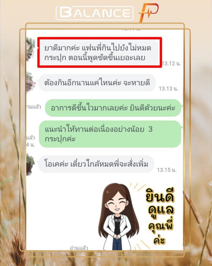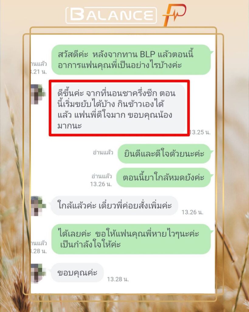 น่าทึ่งมาก!! ตั้งแต่ทานบาลานซ์พี อาการดีขึ้นคุณหมอยังชม อีกทั้งคุณหมอยังให้ทานบาลานซ์พี เพราะมีสารสกัดที่ปลอดภัยและบำรุงช่วยฟื้นฟูบำรุงอาการเส้นเลือดในสมองตีบได้จริงคุณแม่จึงสั่งทานเรื่อยๆ