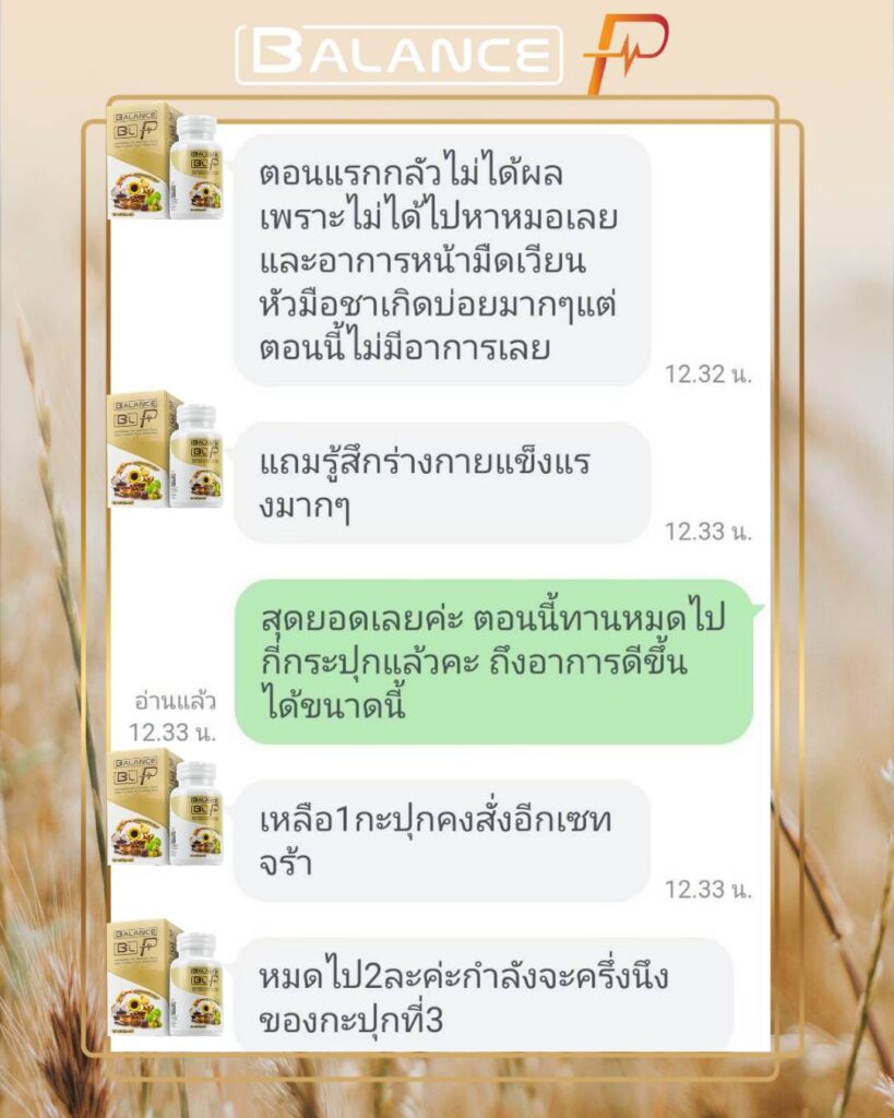 ท่านใดที่กำลังมีปัญหาเกี่ยวกับเส้นเลือดในสมองตีบ แนะนำเลยค่ะบาลานซ์พี ช่วยได้จริง แม่ใช้กับตัวเองเห็นผลชัดเจนไม่ต้องลองผิดลองถูกให้เสียเงินเสียเวลาและเสี่ยงอัมพาตอีกต่อไป ยืนยันดีขึ้น กลับมาใช้ชีวิตปกติเหมือนแม่แน่นอนค่ะ